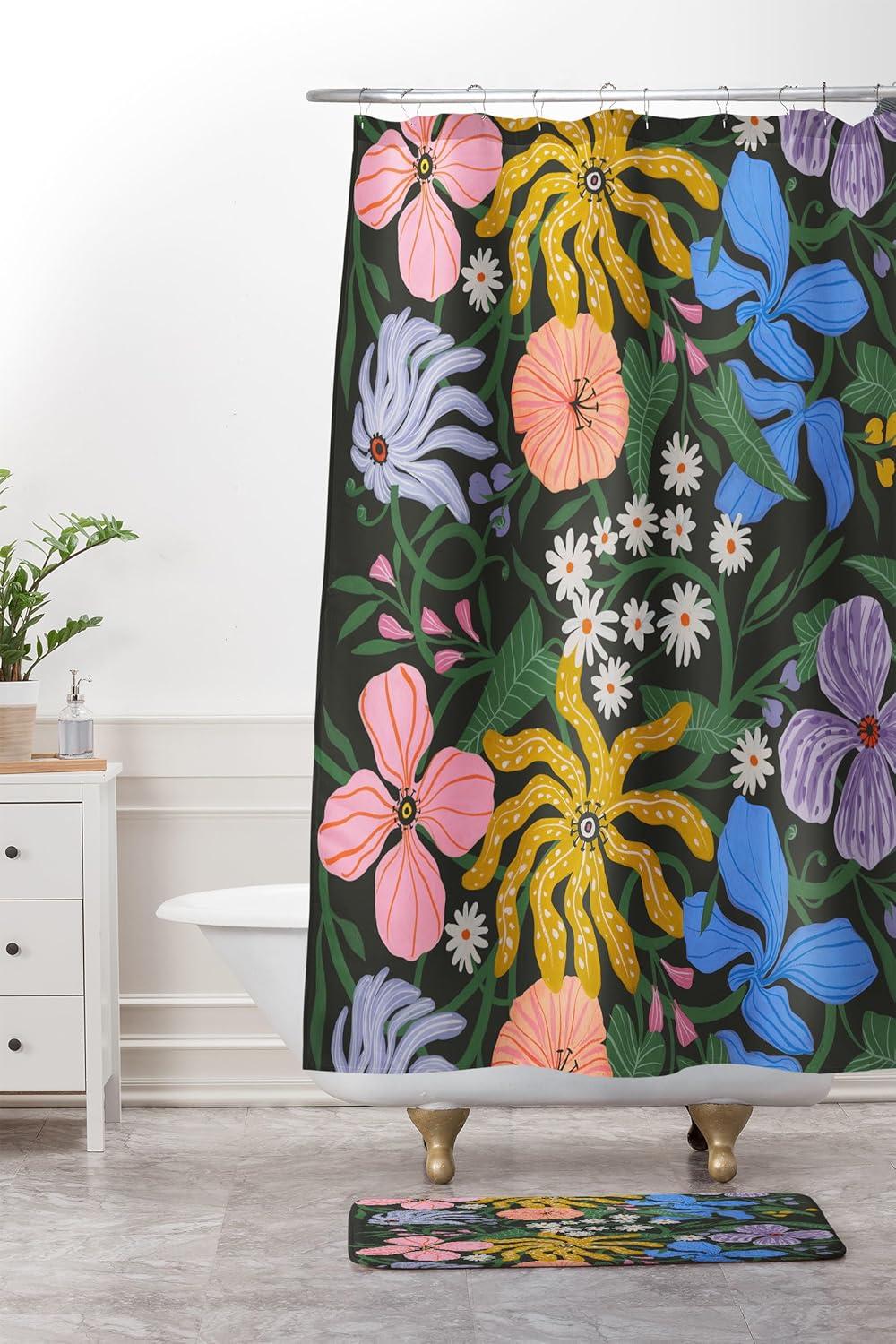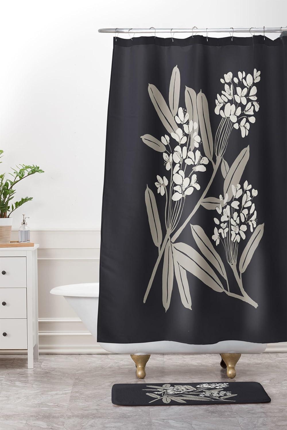 Society6 Bath Mat – Bathroom Decor by Megan Galante – Non-Slip Memory Foam Bathroom Rugs, Soft Microfiber, Machine Washable, 21″ x 34″, Arancia(Boho Botanica Black)