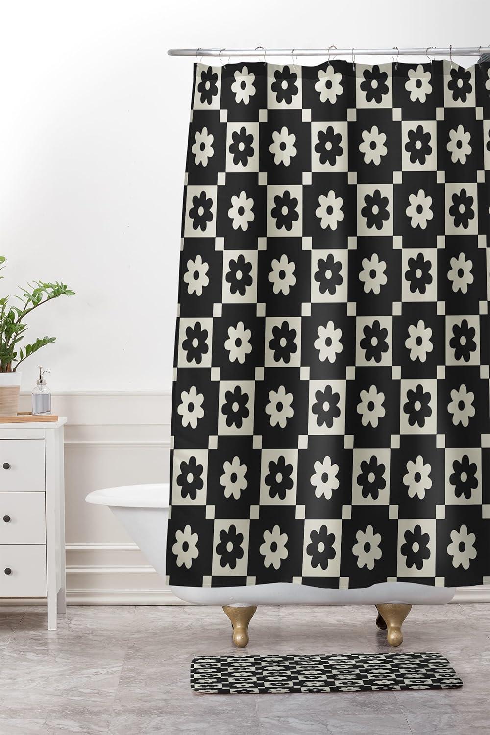 Society6 Bath Mat – Bathroom Decor by Megan Galante – Non-Slip Memory Foam Bathroom Rugs, Soft Microfiber, Machine Washable, 21″ x 34″, Arancia(Checkered Daisy Black Ink)