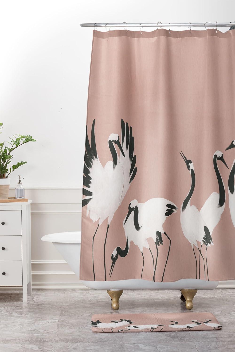 Society6 Bath Mat – Bathroom Decor by Megan Galante – Non-Slip Memory Foam Bathroom Rugs, Soft Microfiber, Machine Washable, 21″ x 34″, Arancia(Crane Dance Mauve Pink)