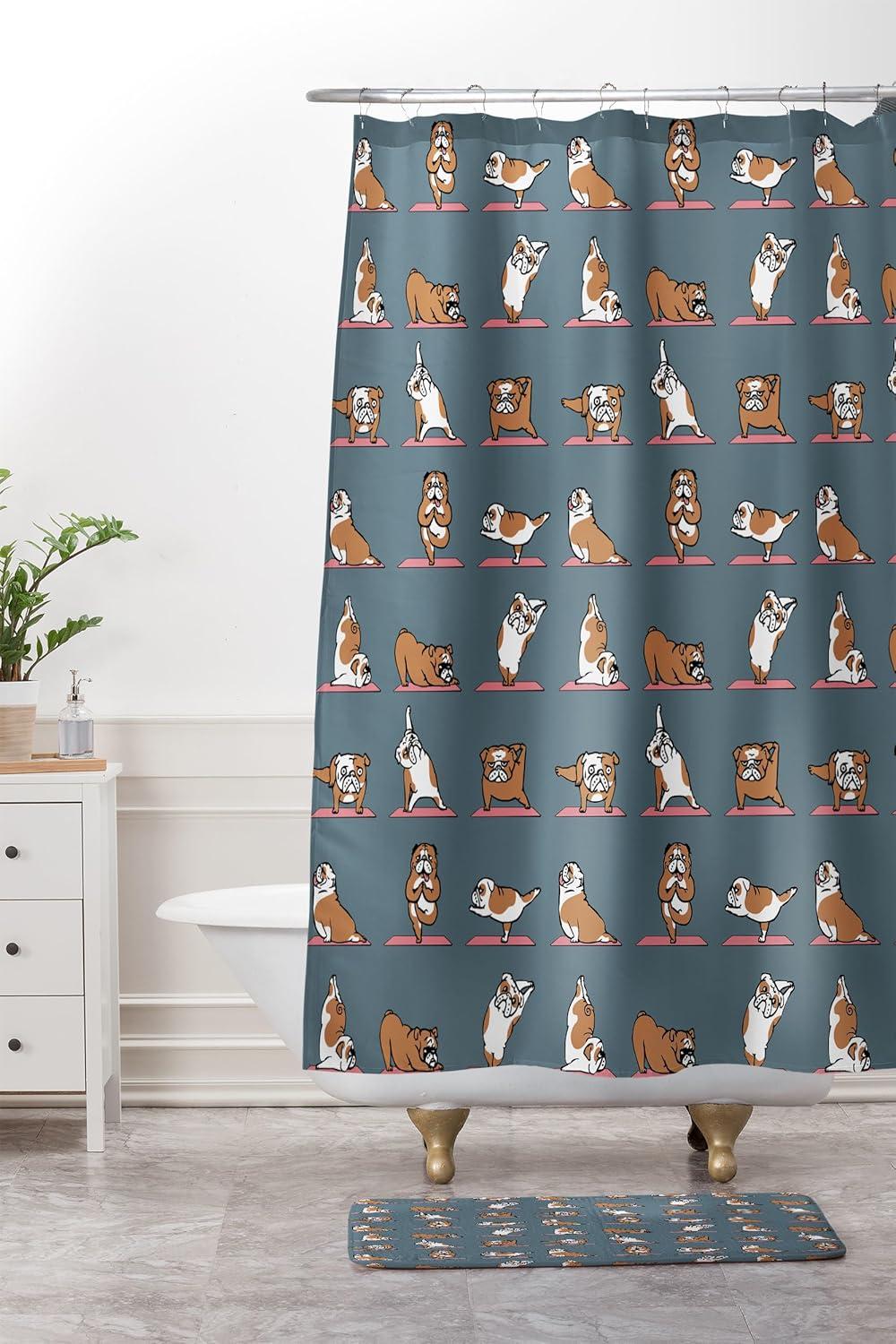 Society6 Bath Mat – Bathroom Decor by Huebucket – Non-Slip Memory Foam Bathroom Rugs, Soft Microfiber, Machine Washable, 21″ x 34″, Huskey Yoga(English Bulldog)