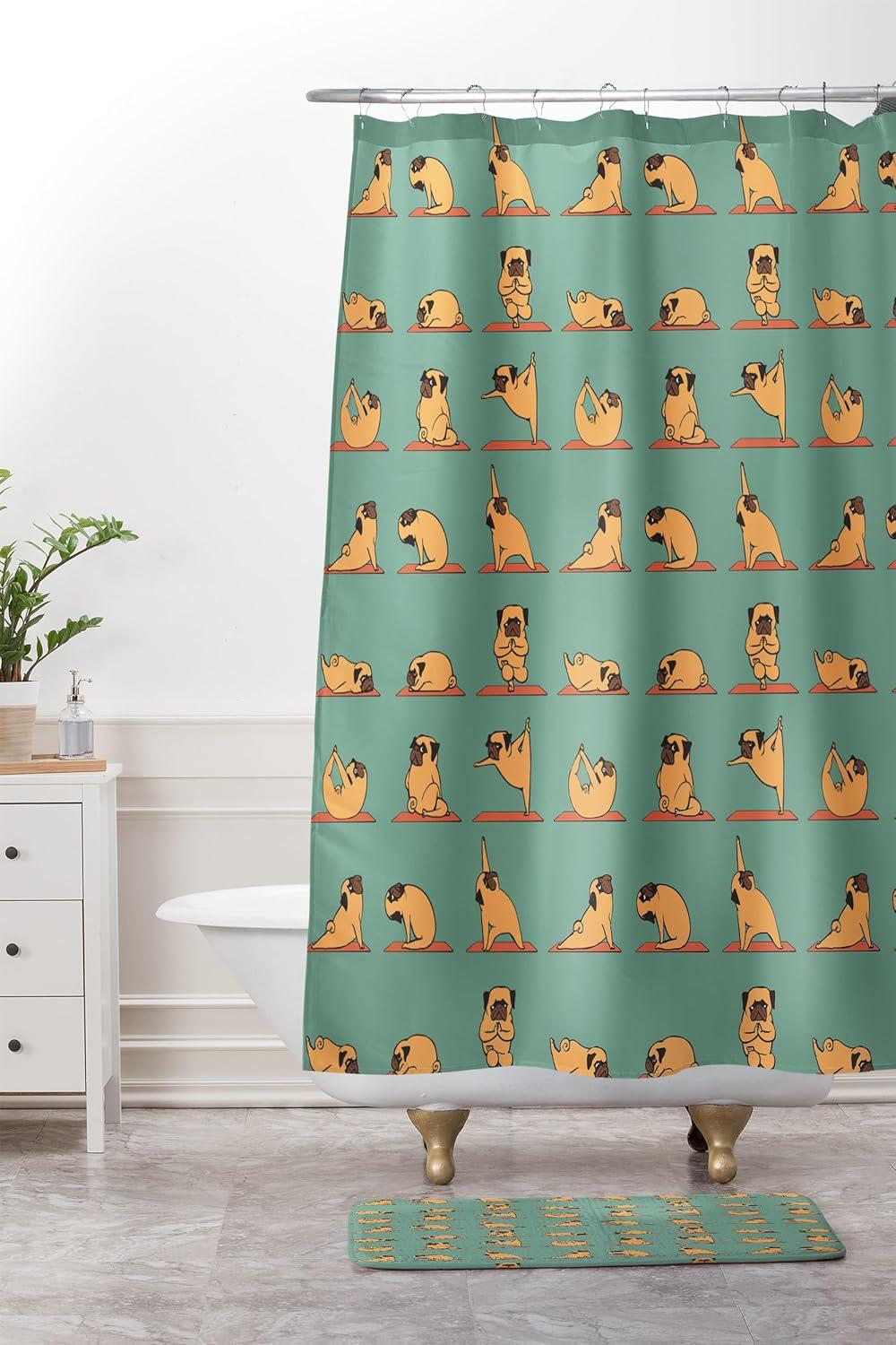 Society6 Bath Mat – Bathroom Decor by Huebucket – Non-Slip Memory Foam Bathroom Rugs, Soft Microfiber, Machine Washable, 21″ x 34″, Huskey Yoga(Pug Yoga)