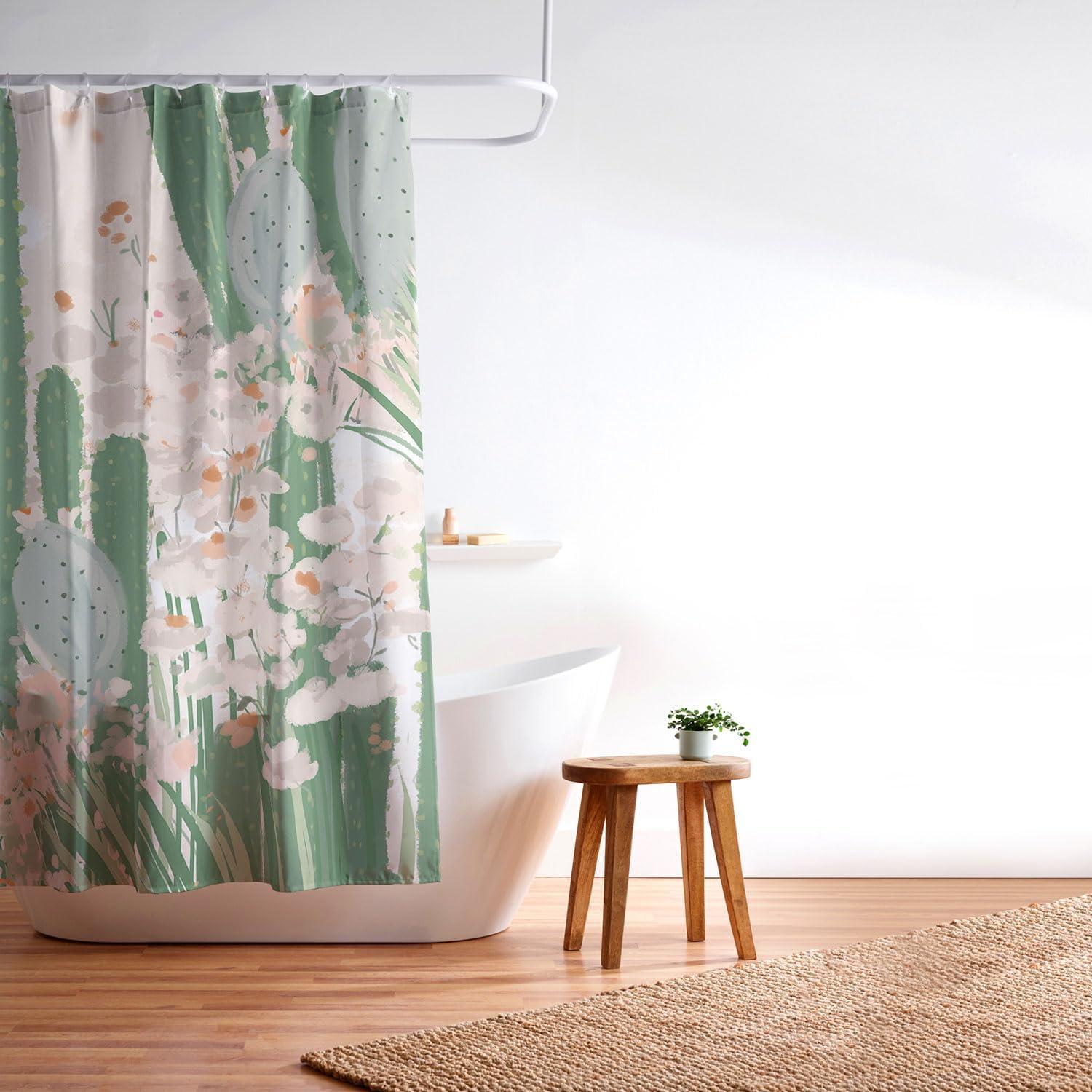 • Society6 Shower Curtain – Bathroom Decor by Alison Janssen – Extra Long Fabric Shower Curtains for Bathroom, 72″ x 69″, Flower Stand – Blue(Cactus Garden)