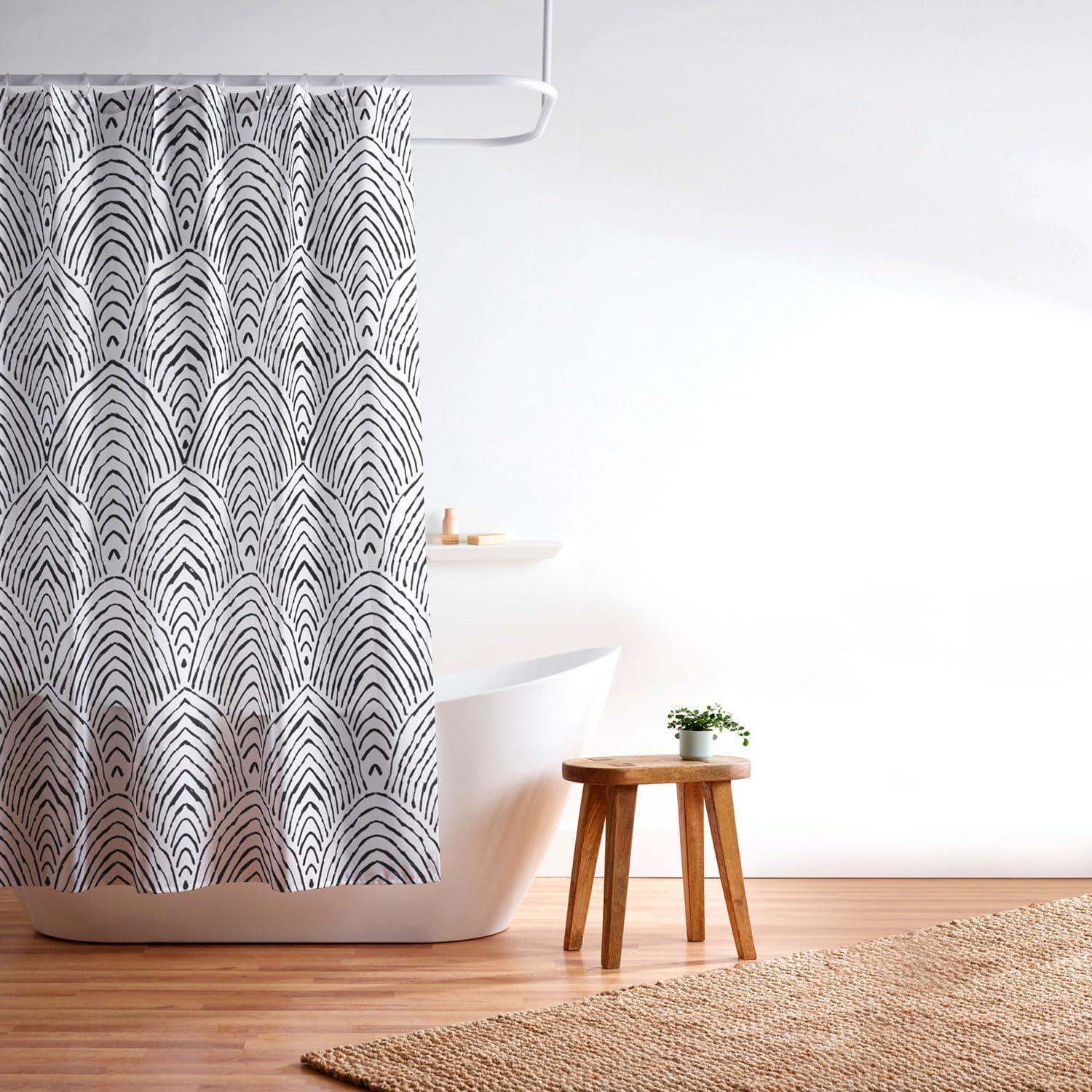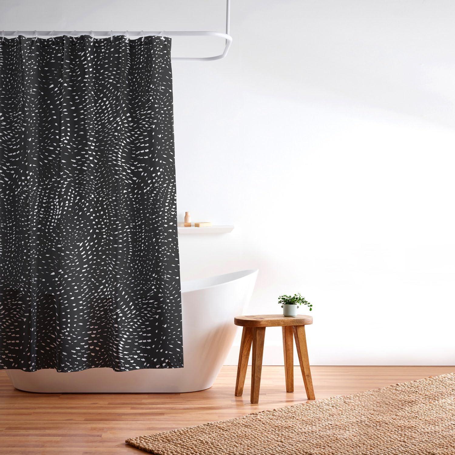• Society6 Shower Curtain – Bathroom Decor by Alison Janssen – Extra Long Fabric Shower Curtains for Bathroom, 72″ x 69″, Flower Stand – Blue(White on Black Dots)