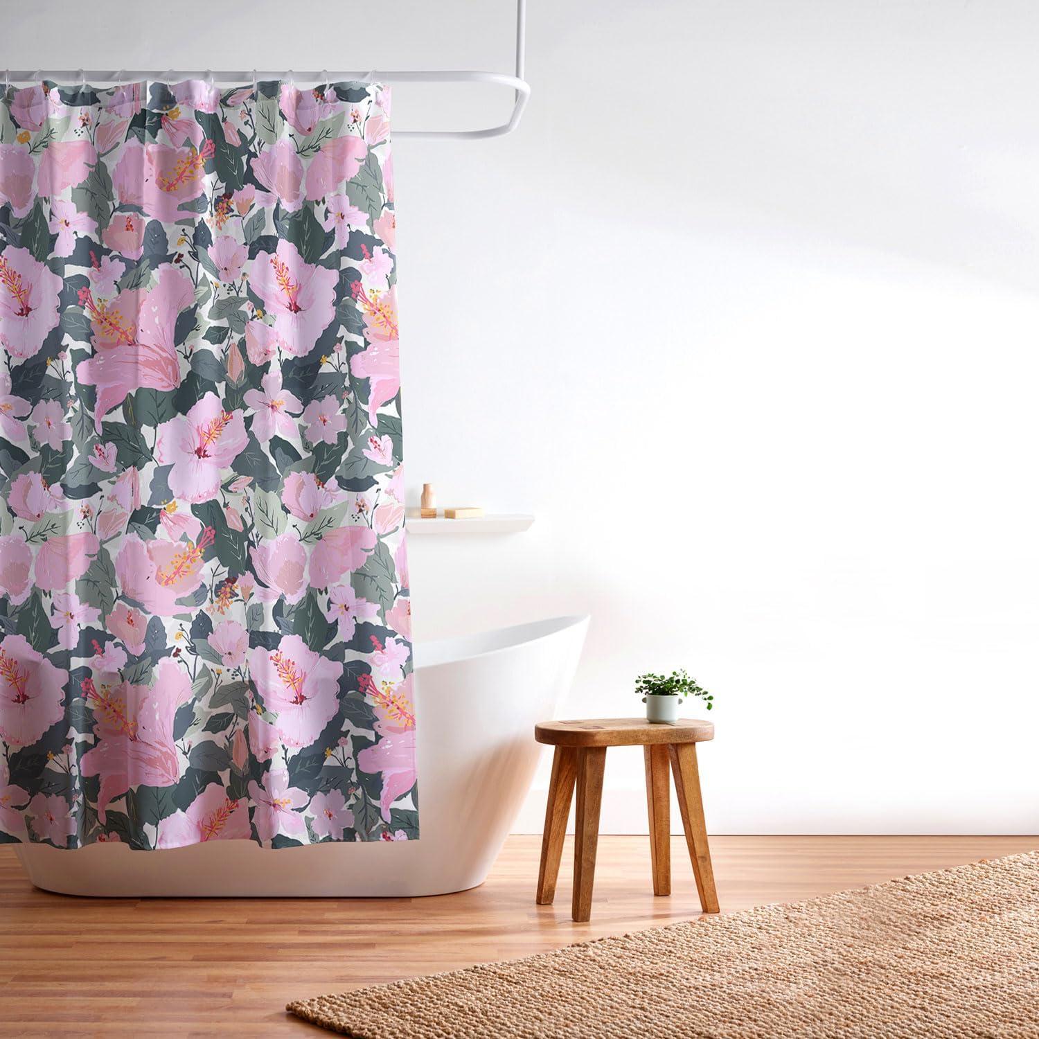 • Society6 Shower Curtain – Bathroom Decor by Alison Janssen – Extra Long Fabric Shower Curtains for Bathroom, 72″ x 69″, Flower Stand – Blue(Tropical Hibiscus)