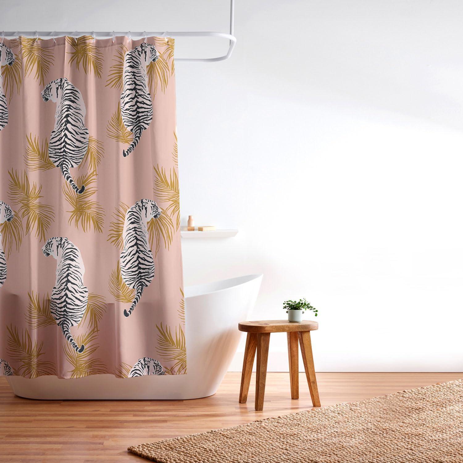 • Society6 Shower Curtain – Bathroom Decor by Alison Janssen – Extra Long Fabric Shower Curtains for Bathroom, 72″ x 69″, Flower Stand – Blue(Paisley Tiger)