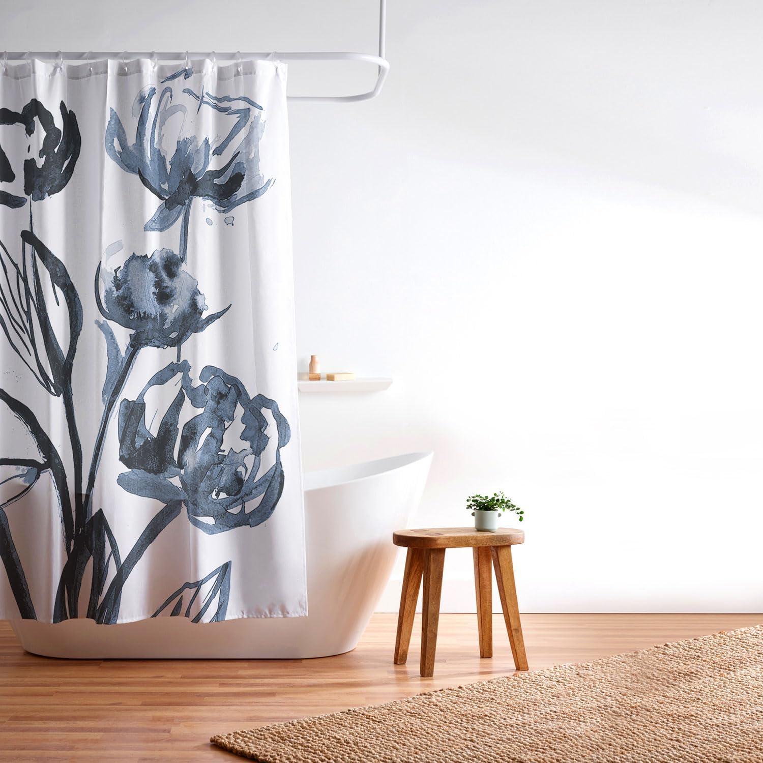 • Society6 Shower Curtain – Bathroom Decor by Alison Janssen – Extra Long Fabric Shower Curtains for Bathroom, 72″ x 69″, Flower Stand – Blue(Rustic Indigo)