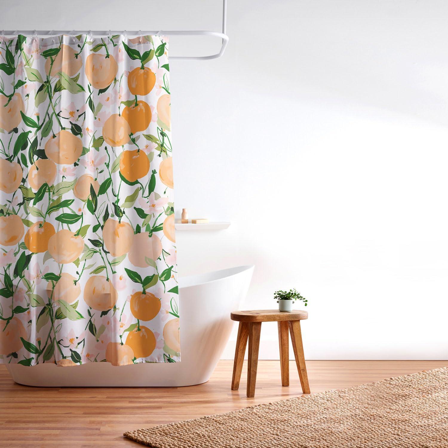 • Society6 Shower Curtain – Bathroom Decor by Alison Janssen – Extra Long Fabric Shower Curtains for Bathroom, 72″ x 69″, Flower Stand – Blue(Spring Clementines)