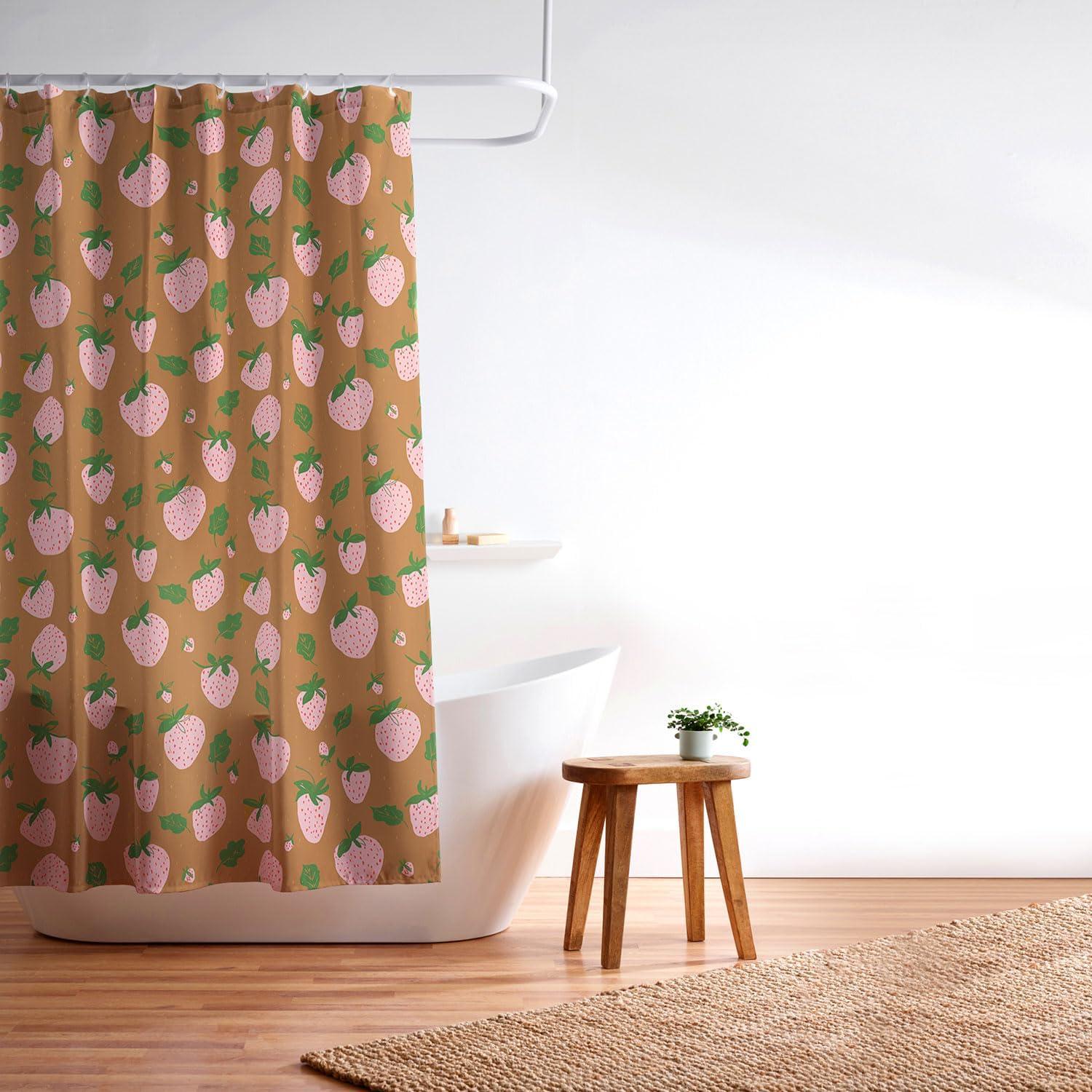 • Society6 Shower Curtain – Bathroom Decor by Alison Janssen – Extra Long Fabric Shower Curtains for Bathroom, 72″ x 69″, Flower Stand – Blue(Strawberries)