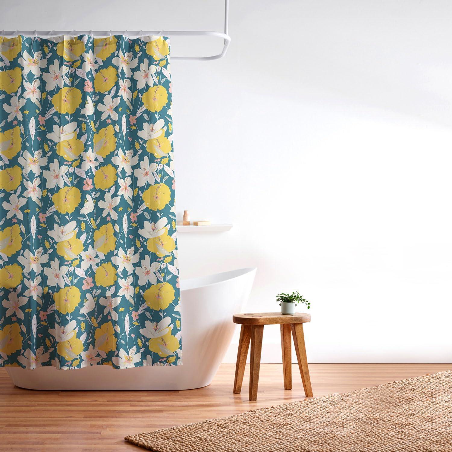 • Society6 Shower Curtain – Bathroom Decor by Alison Janssen – Extra Long Fabric Shower Curtains for Bathroom, 72″ x 69″, Flower Stand – Blue(Yellow Roaming Wildflowers)