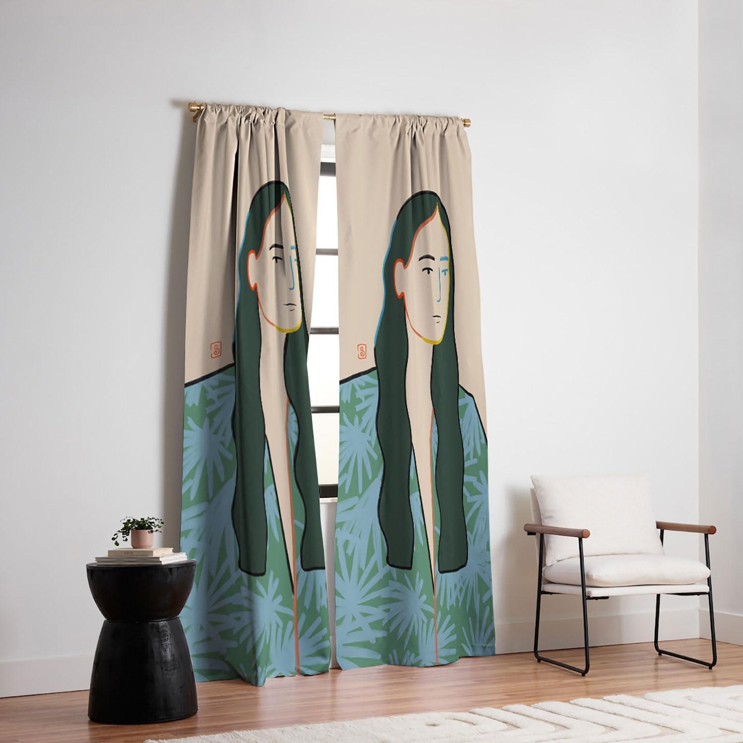 Society6 Blackout Curtains – Window Decor by Sandra Poliakov – Extra Long Floor to Ceiling Curtains, 50″ x 96″, Still Life with an Apple(Calm Woman Portrait)