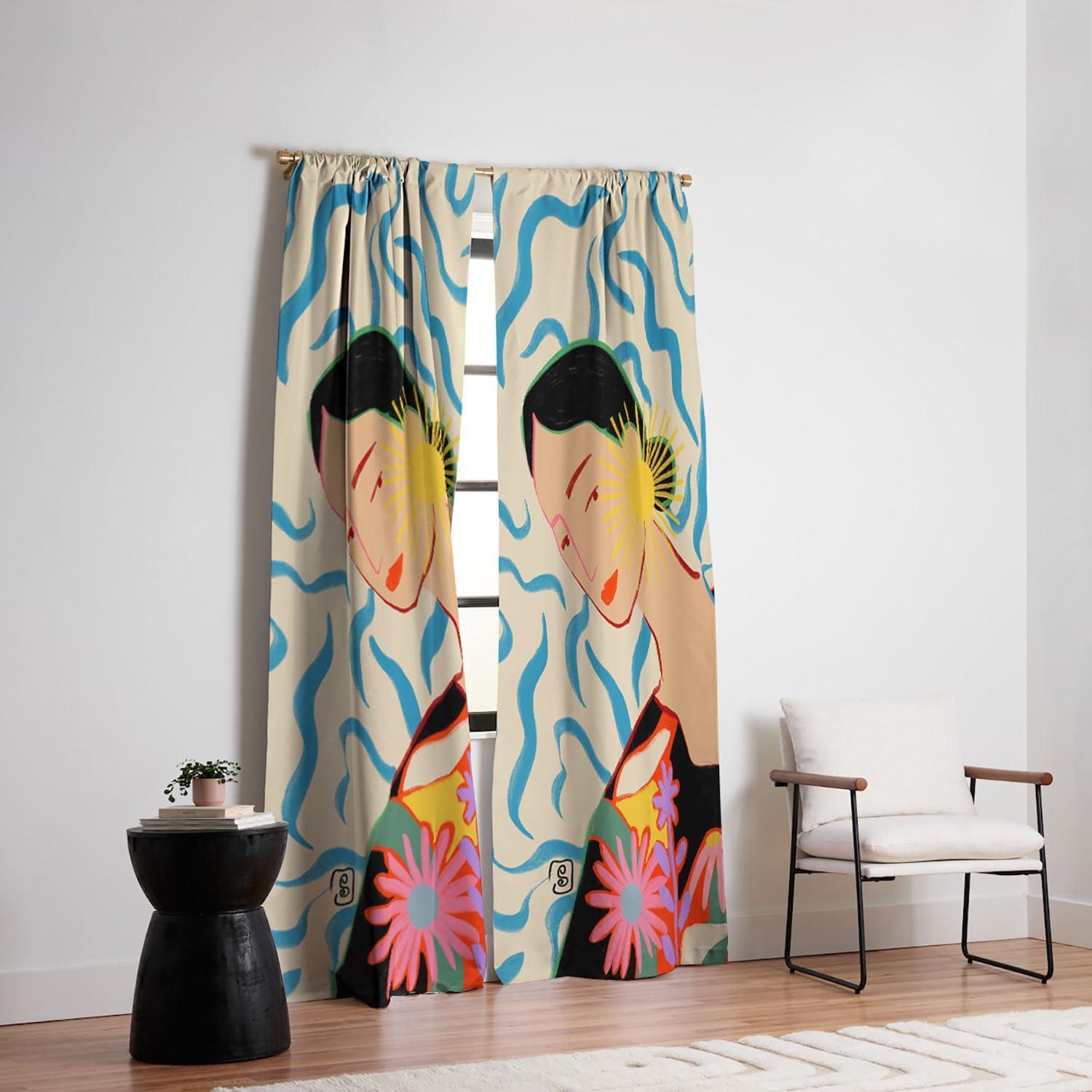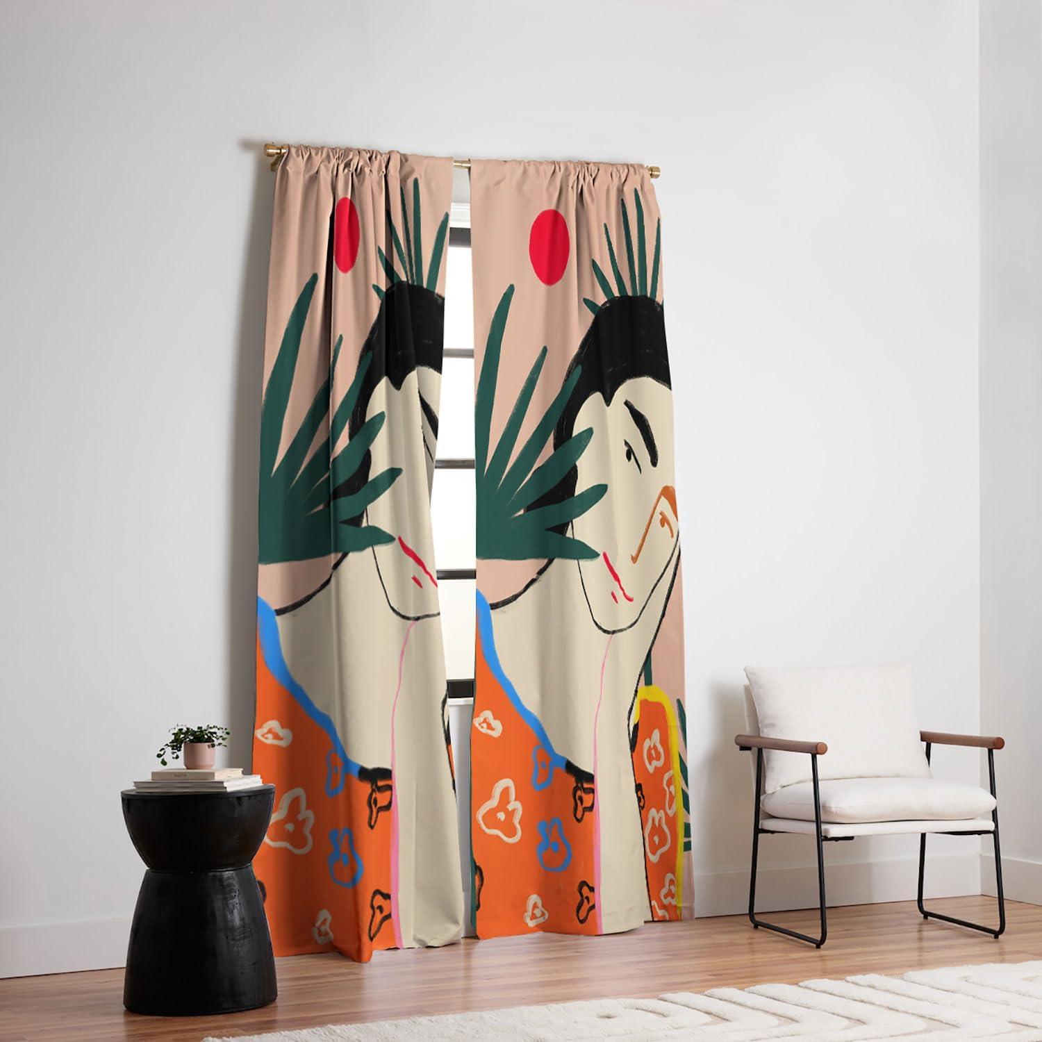 Society6 Blackout Curtains – Window Decor by Sandra Poliakov – Extra Long Floor to Ceiling Curtains, 50″ x 96″, Still Life with an Apple(Smiling Woman and Sunshine)