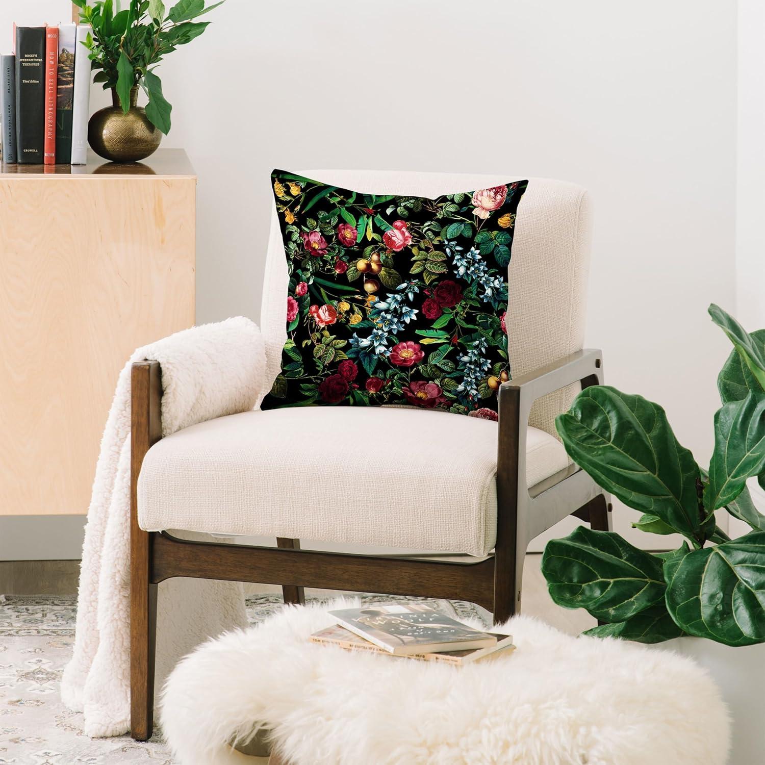 • Society6 Throw Pillows with Pillow Insert – Home Decor by Burcu Korkmazyurek – Decorative Accent Pillows for Couch or Bed, 16” x 16”, Summer Botanical Garden VIII(Exotic Garden – Night III)