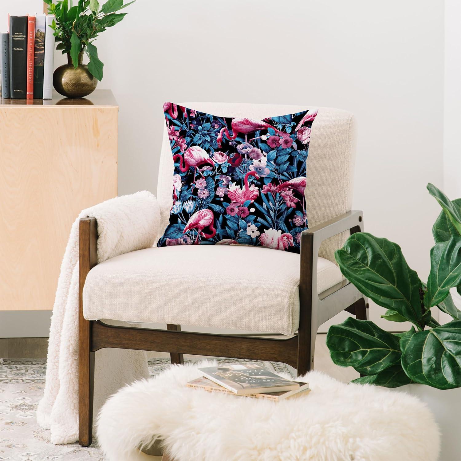 • Society6 Throw Pillows with Pillow Insert – Home Decor by Burcu Korkmazyurek – Decorative Accent Pillows for Couch or Bed, 16” x 16”, Summer Botanical Garden VIII(Floral and Flamingo VIII)
