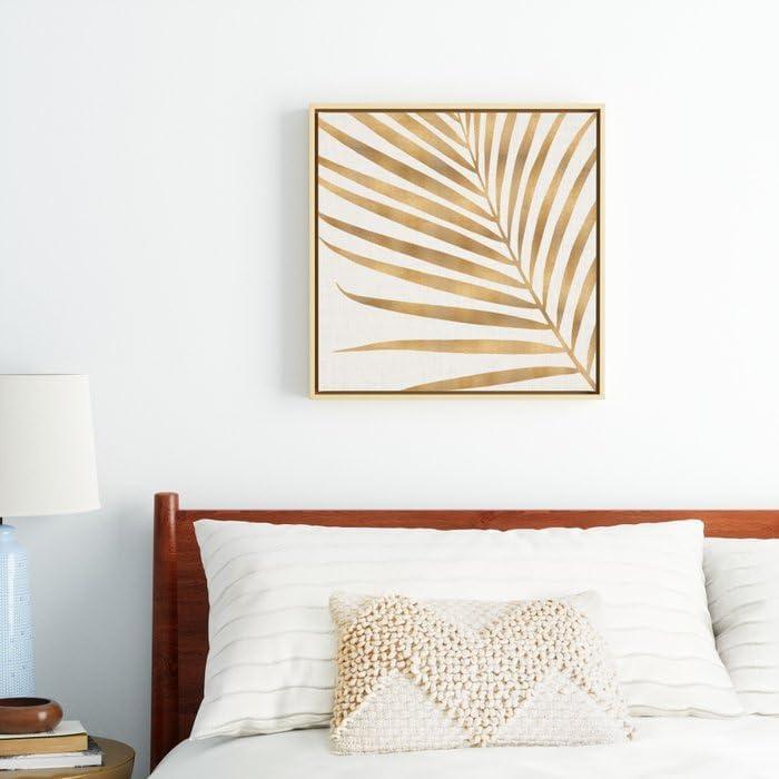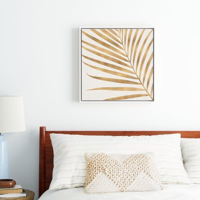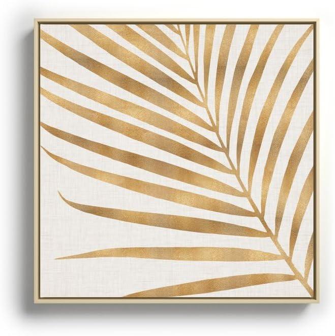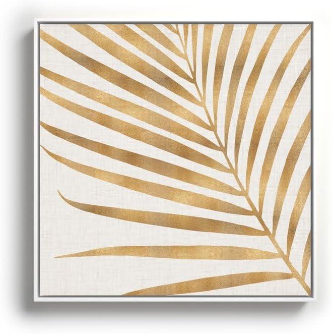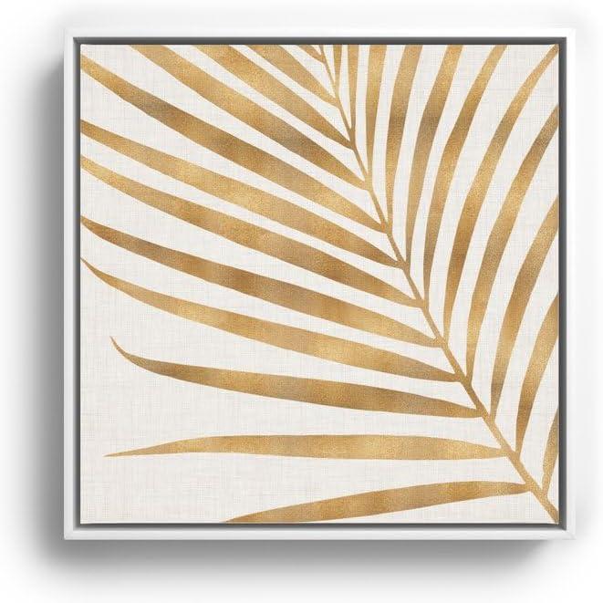 Society6 Metallic Gold Palm Leaf Canvas Print – Modern Wall Art by Modern Tropical – Framed Canvas, Gallery-Quality Canvas with Fade-Resistant Ink, 10 X 10, Walnut(White)
