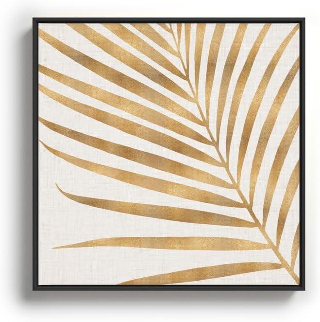 Society6 Metallic Gold Palm Leaf Canvas Print – Modern Wall Art by Modern Tropical – Framed Canvas, Gallery-Quality Canvas with Fade-Resistant Ink, 10 X 10, Walnut(Black)