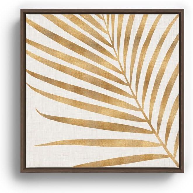 Society6 Metallic Gold Palm Leaf Canvas Print – Modern Wall Art by Modern Tropical – Framed Canvas, Gallery-Quality Canvas with Fade-Resistant Ink, 10 X 10, Walnut(Walnut)