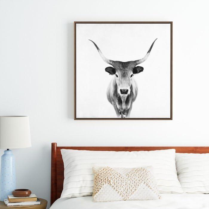 Society6 Wild Longhorn Cow Print – Black White Cow Portrait – Animal – Travel Photograpy Canvas Print – Modern Wall Art by Ingrid Beddoes Photography – Framed Canvas, Gallery-Quality Canvas with Fade-Resistant Ink, 30 X 30, Walnut