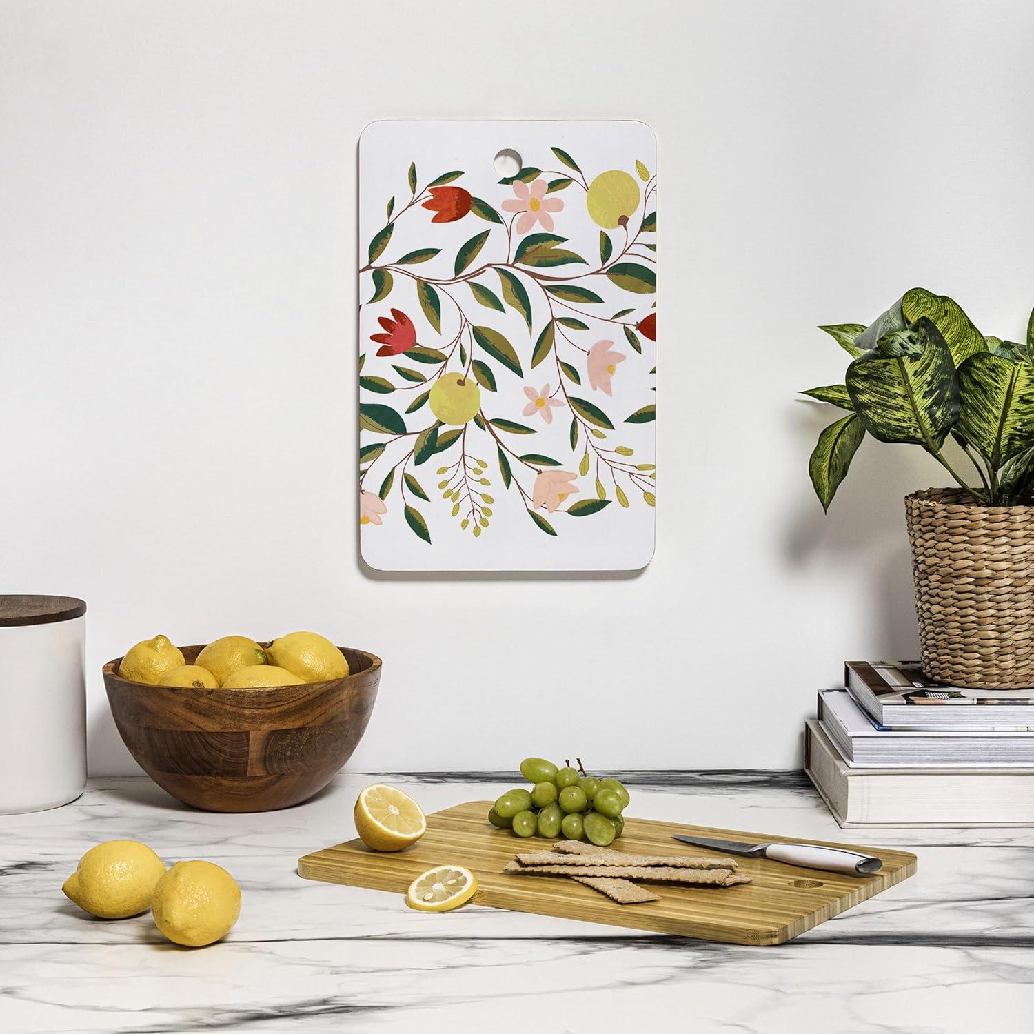 Elevate your kitchen decor with the Society6 83 Oranges White Pigeons Cutting Board. This vibrant and colorful cutting board adds a touch of botanical elegance, making it perfect for food prep or serving charcuterie in style. Crafted from durable bamboo wood, this lightweight reversible cutting board features a smooth satin finish on the artwork side and a matte natural wood grain on the prep side, providing both functionality and eye-catching appeal. This versatile and portable cutting board is available in two sizes: round (11.5″ x 0.5″) and rectangle (16″ x 10.5″ x 0.5″), making it easy to find the perfect fit for your kitchen. The built-in 1″ hole makes hanging and storage effortless, while the beautiful botanical print makes it a statement piece on your countertop. To clean, hand wash with mild soap and water, then dry immediately to maintain quality. Not dishwasher safe. Avoid soaking to protect the bamboo wood and artwork. At Society6, we believe in inspiring self-expression by celebrating creativity. By connecting art makers with art lovers, we empower people to celebrate what makes them unique. We’re committed to creating change without compromise by supporting sustainable production techniques and ensuring art for everyone.