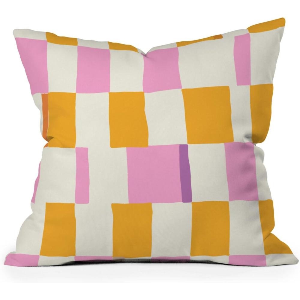 Society6 Home Annick-Decorative Accent Couch or Bed Throw Pillow Insert, 16″x16″, Palm Leaves Arch Pattern Rust(Summer Check Hand Drawn Orange)