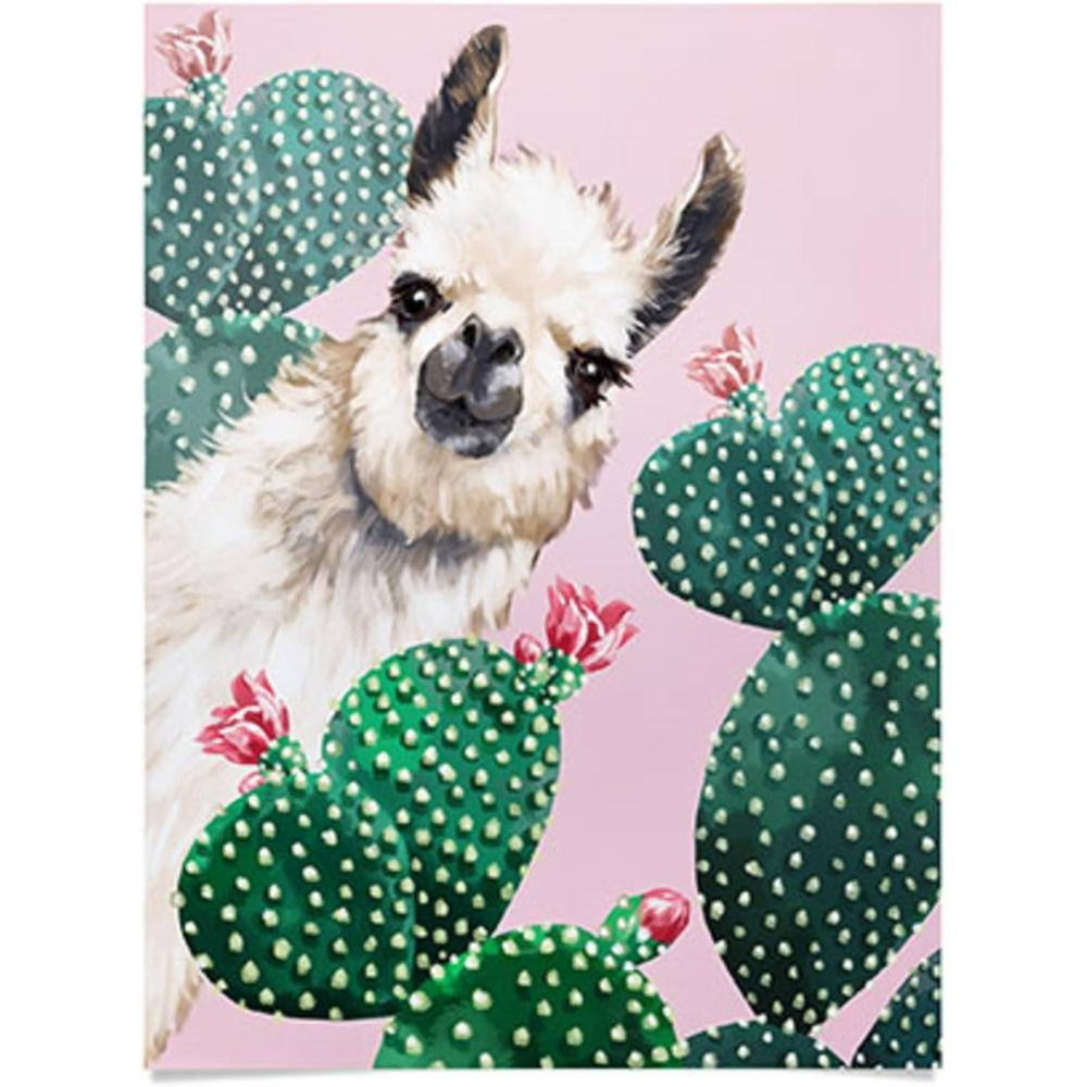 Society6 Llama Waves in Pink Wall Art – Wall Decor by Big Nose Work – Smooth Gloss Paper, 18″ x 24″(Llama and Cactus Pink)