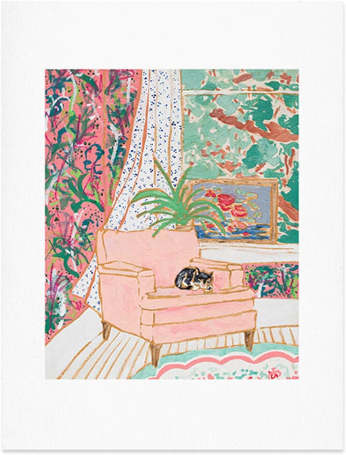Society6 Nautical Striped Vase of Flowers Art Print – Wall Decor by Lara Lee Meintjes – Custom Trimmed Modern Wall Art Prints for Framing, 18” x 24”(Catnap)