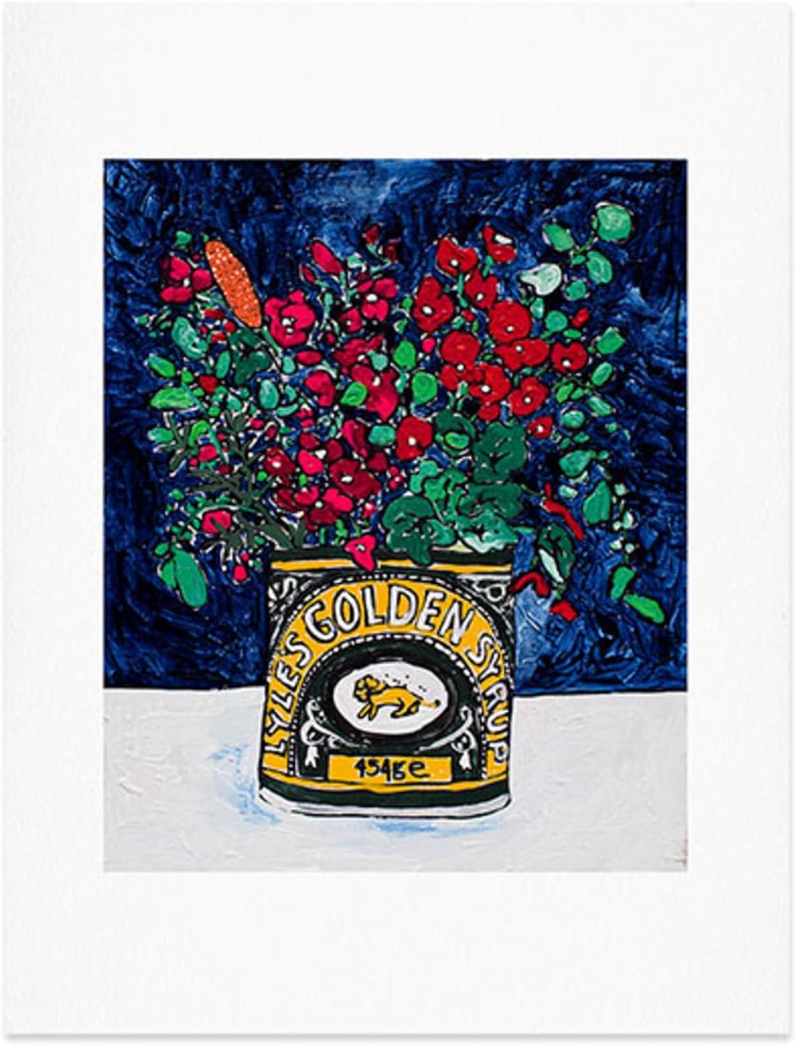 Society6 Nautical Striped Vase of Flowers Art Print – Wall Decor by Lara Lee Meintjes – Custom Trimmed Modern Wall Art Prints for Framing, 18” x 24”(Wild Flowers in Golden Syrup Tin on Blue)