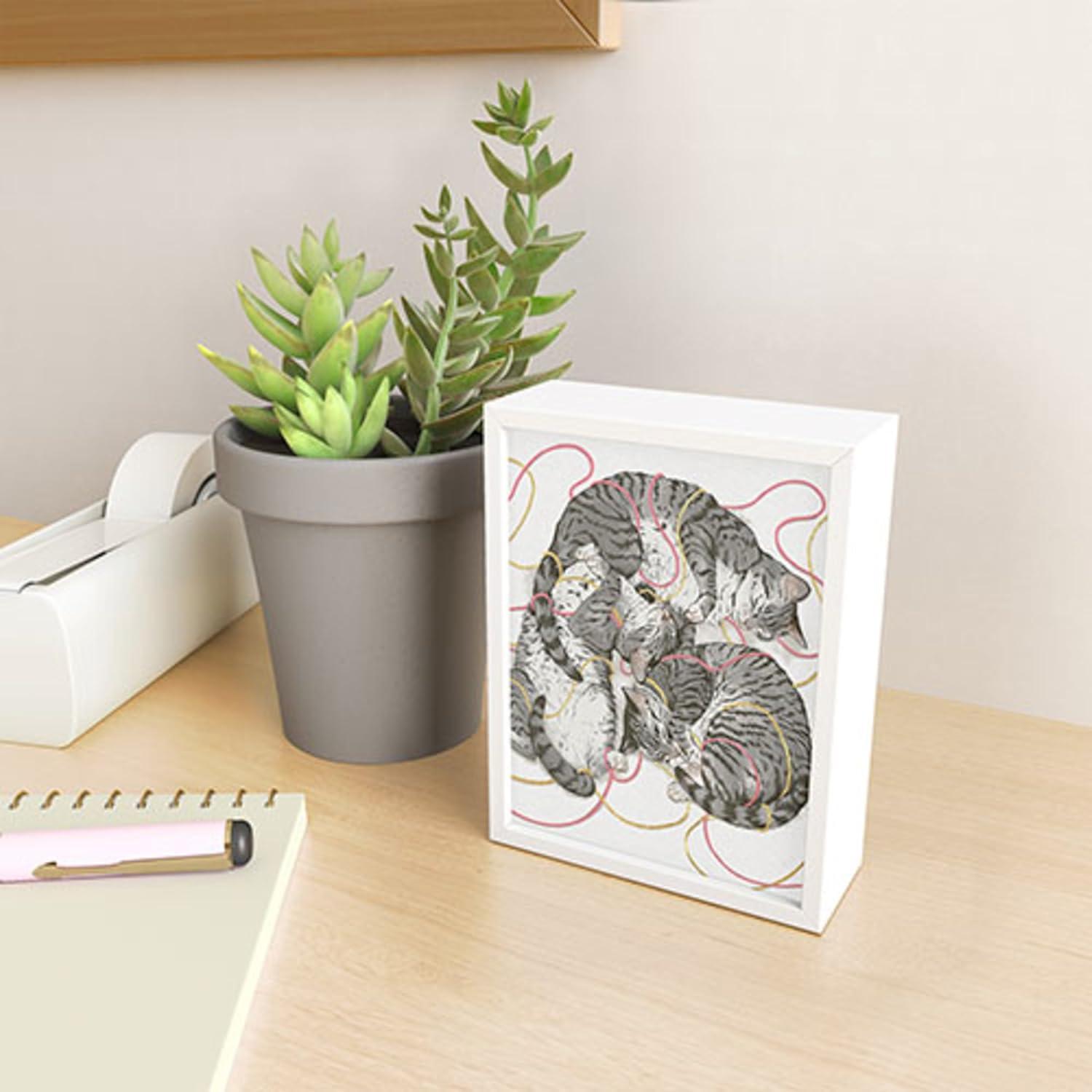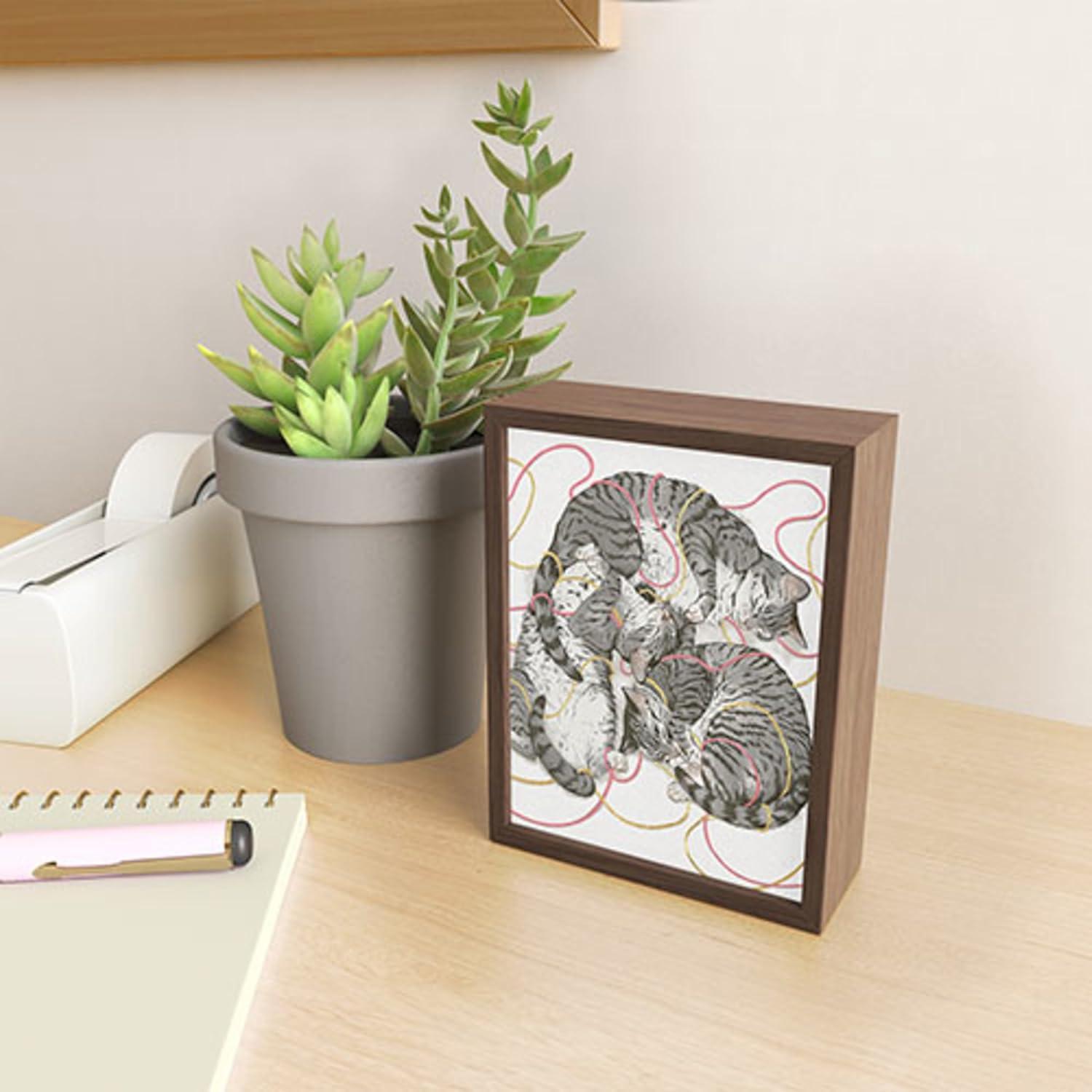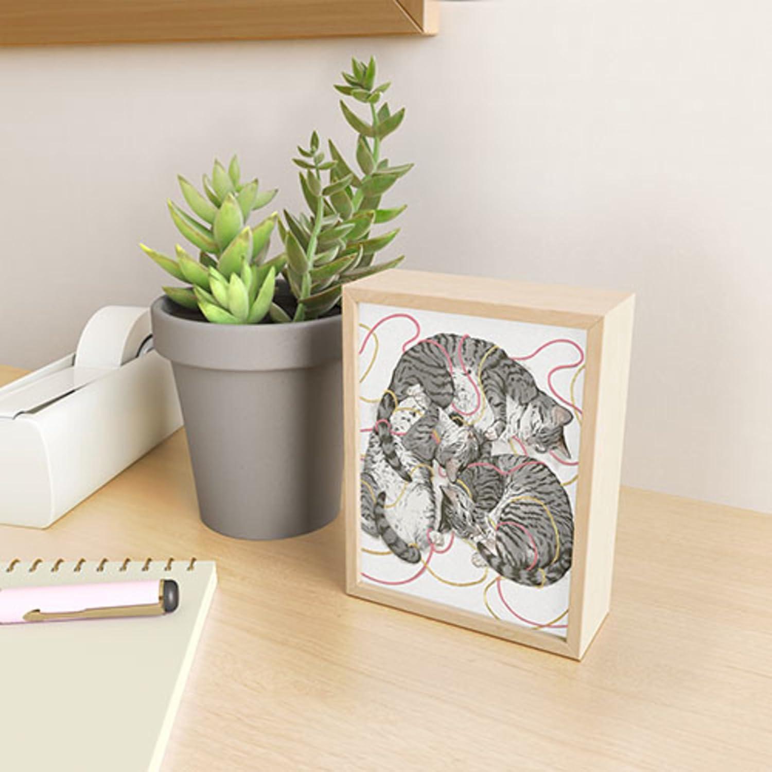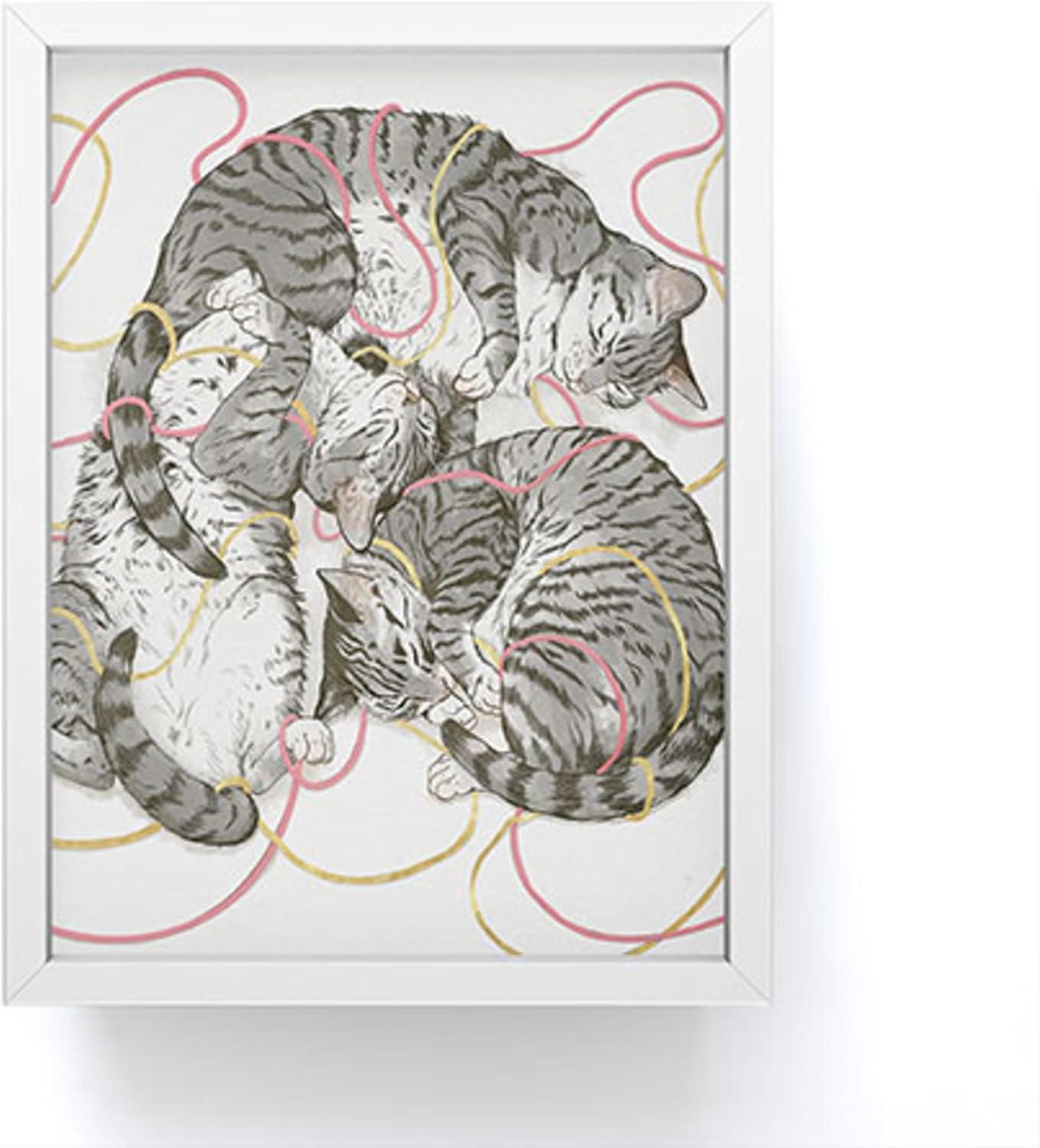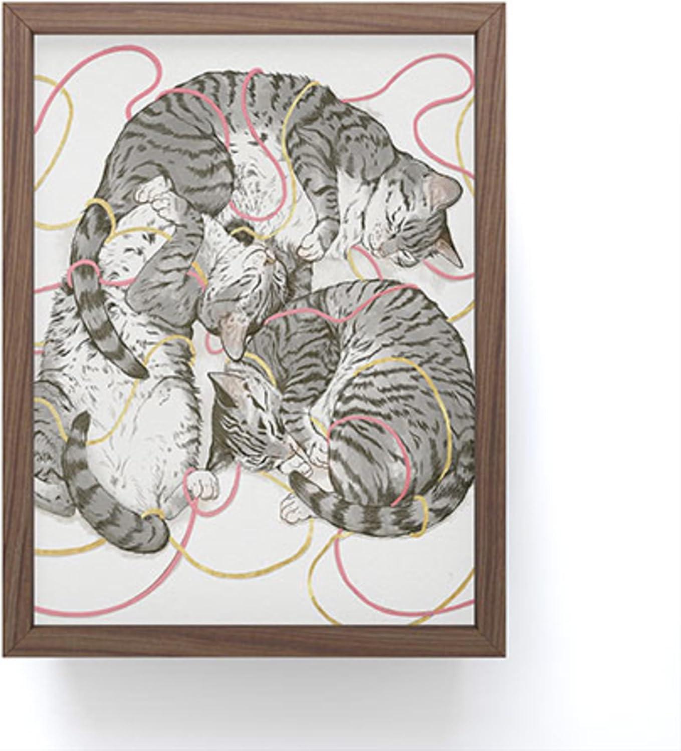 Society6 Octopus Rainbow Framed Mini Art Print – Wall Decor by Laura Graves – Framed, Small – Scale Work of Art with Gallery – Quality Ink, 3” x 4”, Light Maple Frame(Cats Trio)