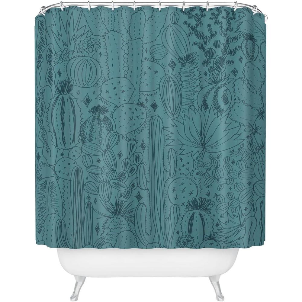 Society6 Shower Curtain – Bathroom Decor by Doodle by Meg – Fabric Shower Curtains for Bathroom, 72″ x 69″, Psychedelic Space(Cactus Scenes in Blue)