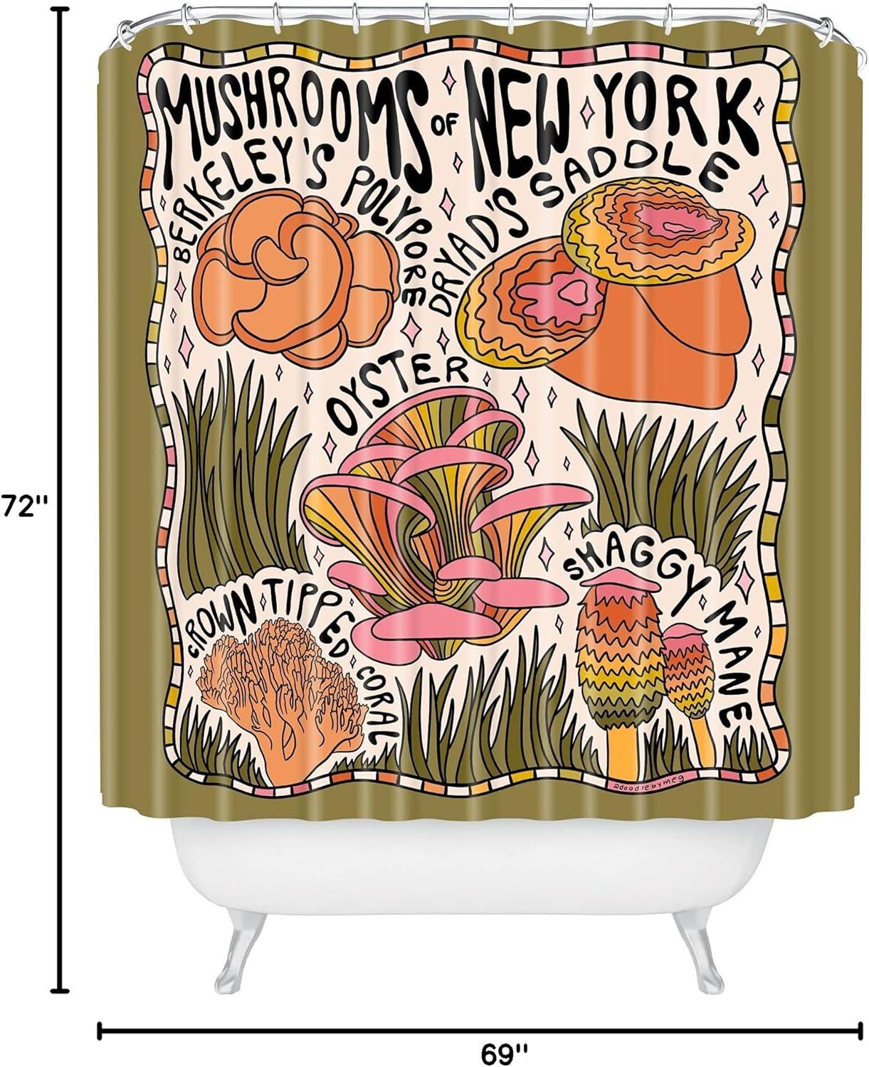 Society6 Shower Curtain – Bathroom Decor by Doodle by Meg – Fabric Shower Curtains for Bathroom, 72″ x 69″, Psychedelic Space(Mushrooms of New York)