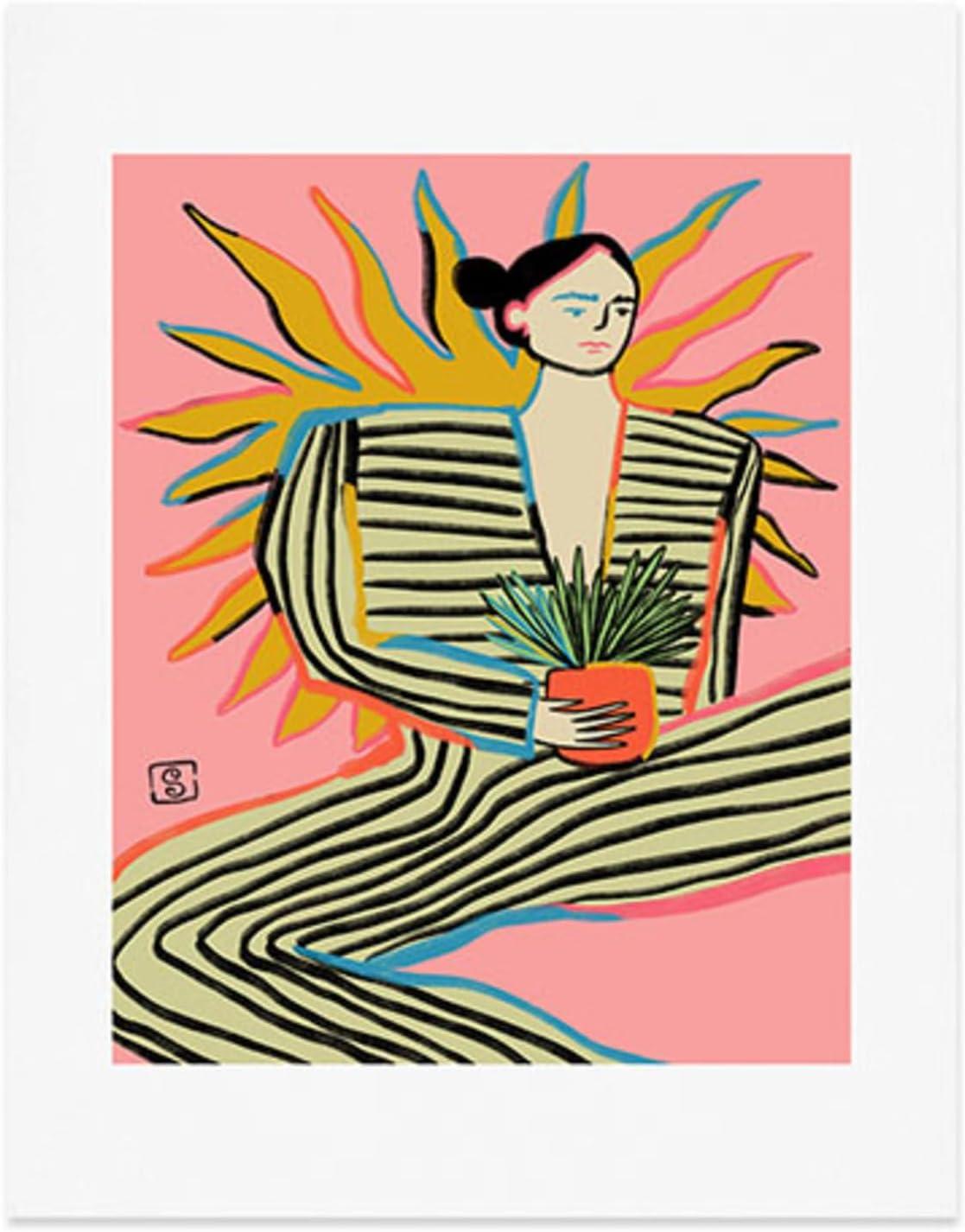 Society6 Woman in A Field of Flowers – Wall Decor by Sandra Poliakov – Custom Trimmed Modern Wall Art Prints for Framing, 11” x 14”, Woman in A Field of Flowers(Sun Power)