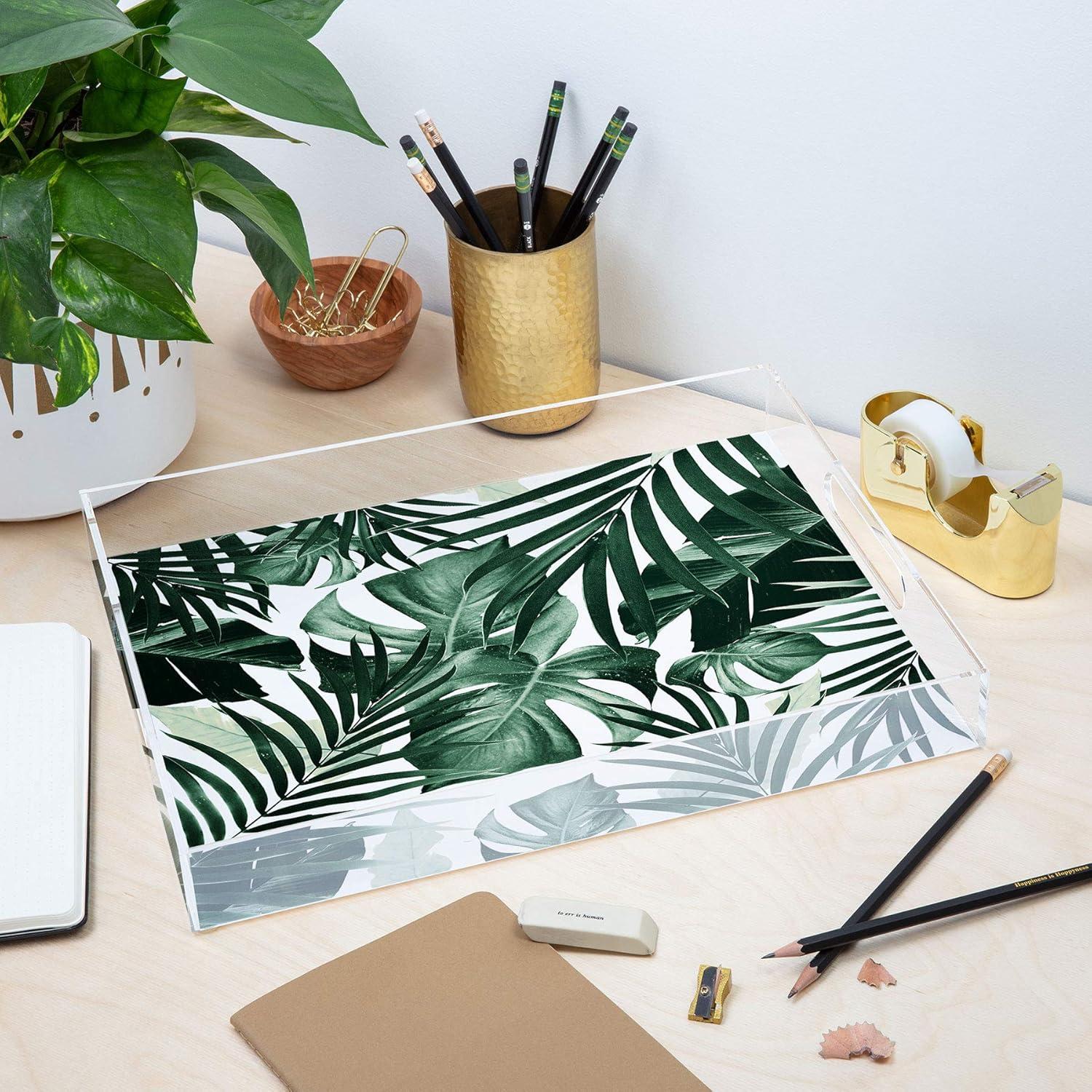 • Society6 Anita Bella Jantz Tropical Jungle Leaves 4 Acrylic Tray, 15.5″x12″, Green